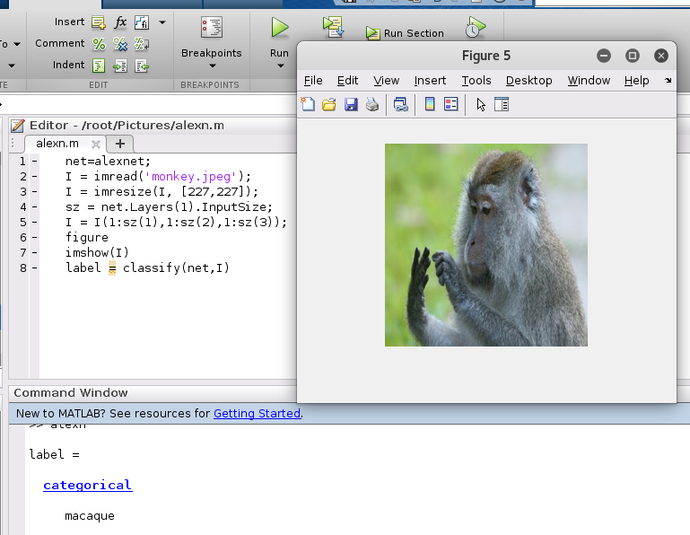 Make sure that the image is present in the directory where the script is saved, if not you can define in a more concrete manner like $User/Pictures/monkey.jpegfor E:/monkey.jpegdepending on where you have it saved. So, let’s create the script from the snippet below and save it to say, alexExample.m